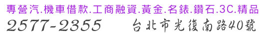 台北市長虹當舖專業提供汽車借款、機車借款、黃金、鑽石、名錶、3C產品、名牌精品..萬物皆可借款借錢服務。